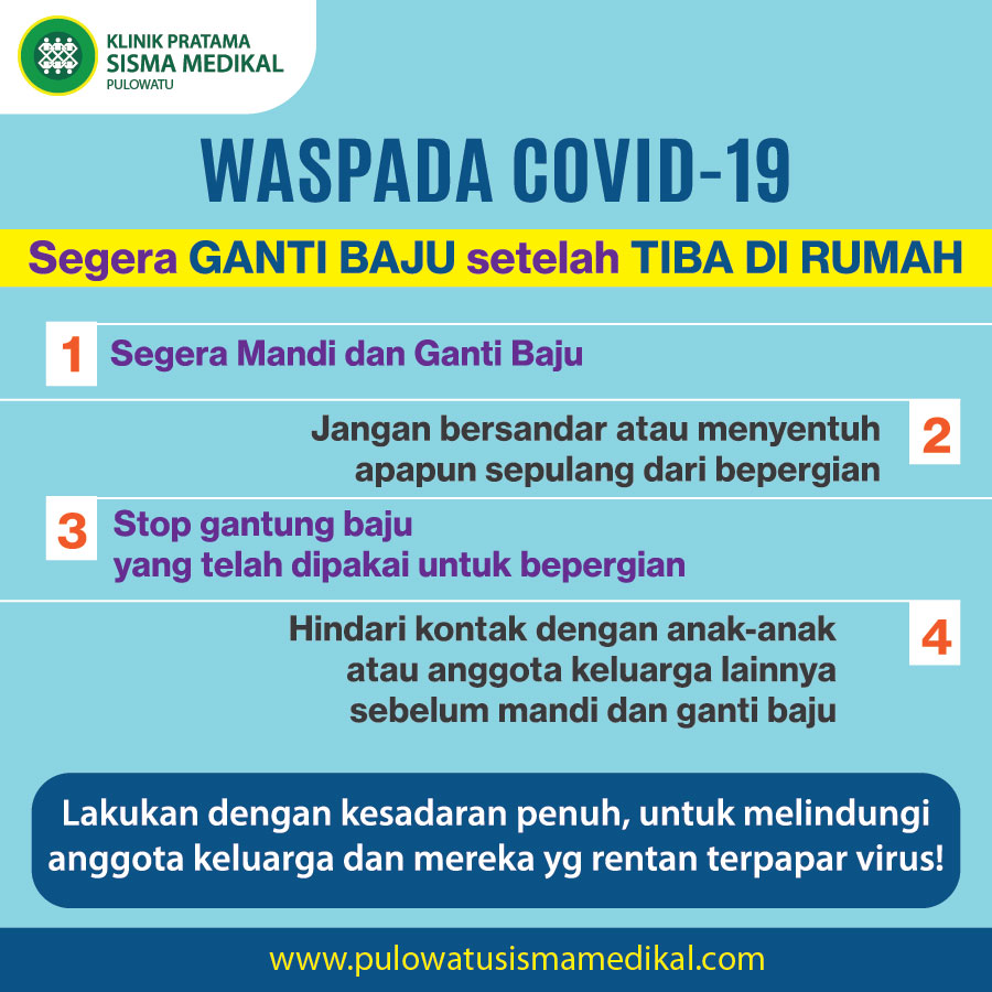 1. Segerakan mandi dan ganti baju setelah tiba di rumah.